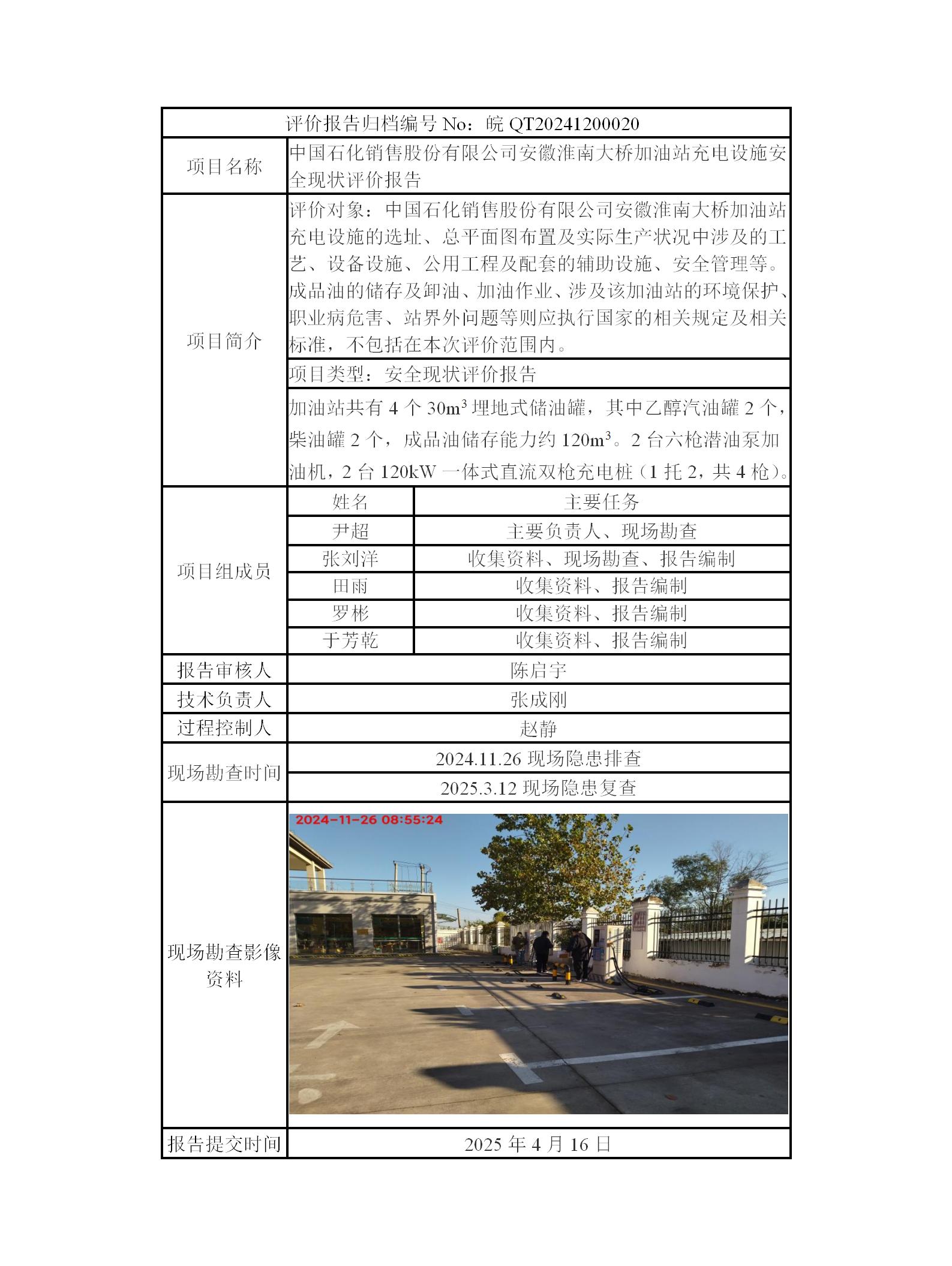 中国石化销售股份有限公司安徽淮南大桥加油站充电设施安全现状评价报告