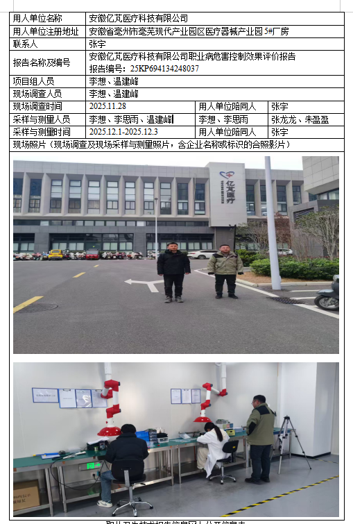 安徽亿芃医疗科技有限公司职业病危害控制效果评价报告