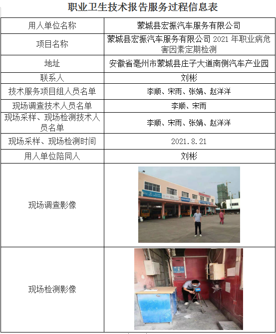 蒙城县宏振汽车服务有限公司职业病危害因素定期检测