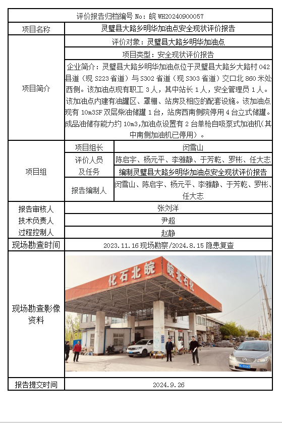 濉溪县睿思商贸有限公司内部自用阻隔防爆橇装加油装置 安全现状评价报告