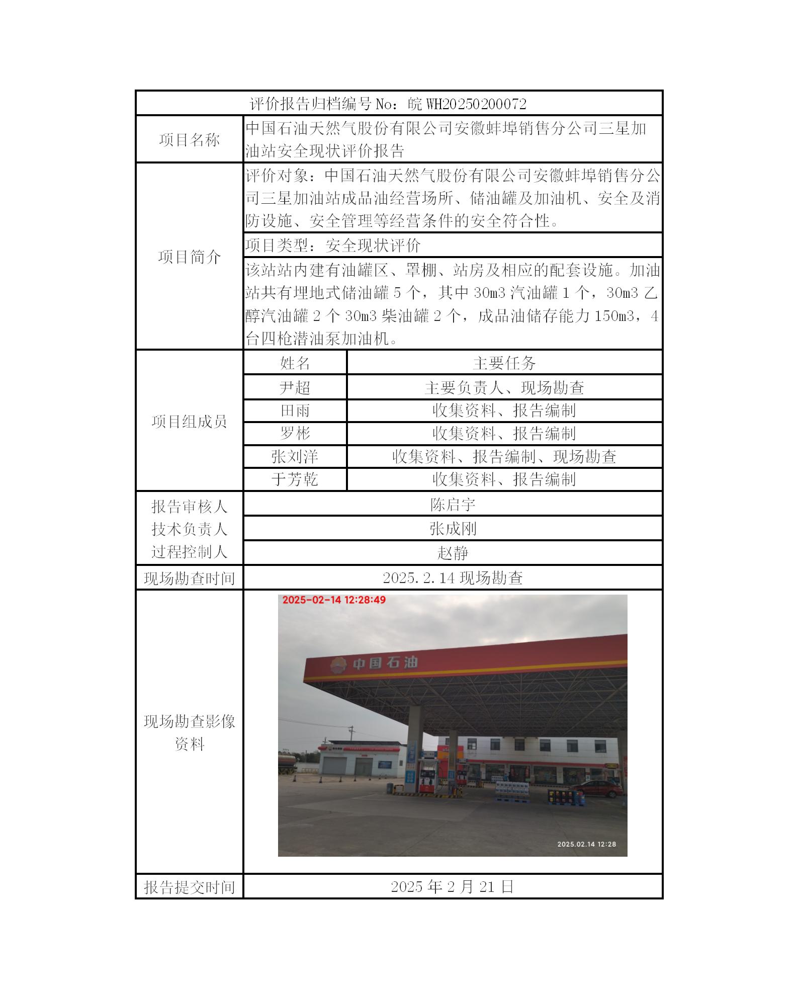 中国石油天然气股份有限公司安徽蚌埠销售分公司三星加油站安全现状评价报告
