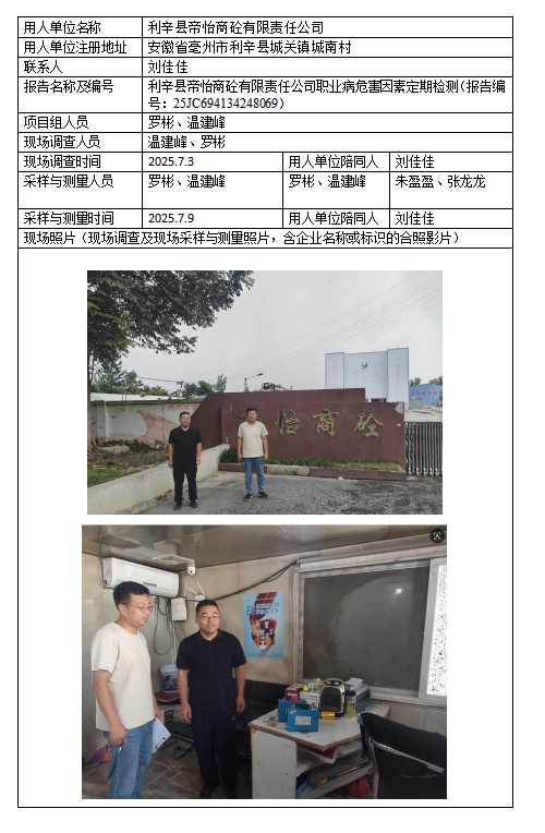 利辛县帝怡商砼有限责任公司职业病危害因素定期检测(报告编号:25JC694134248069)