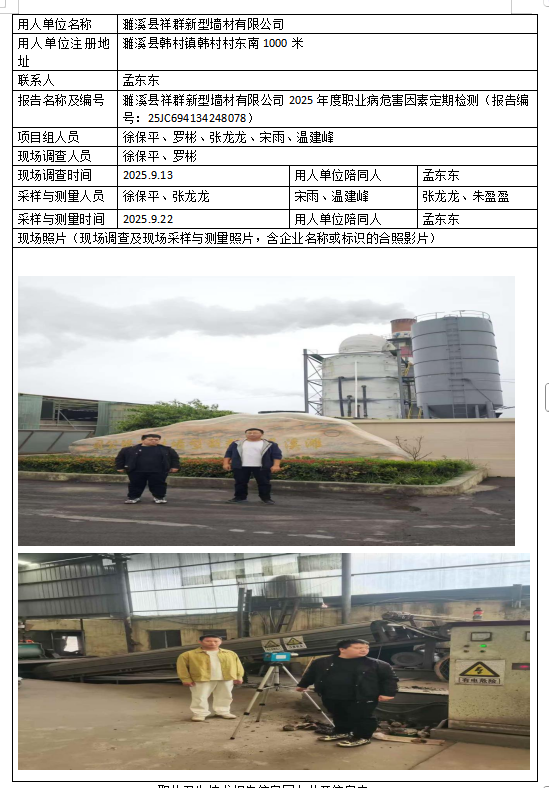 濉溪县祥顺建材有限责任公司2025年度职业病危害因素定期检测