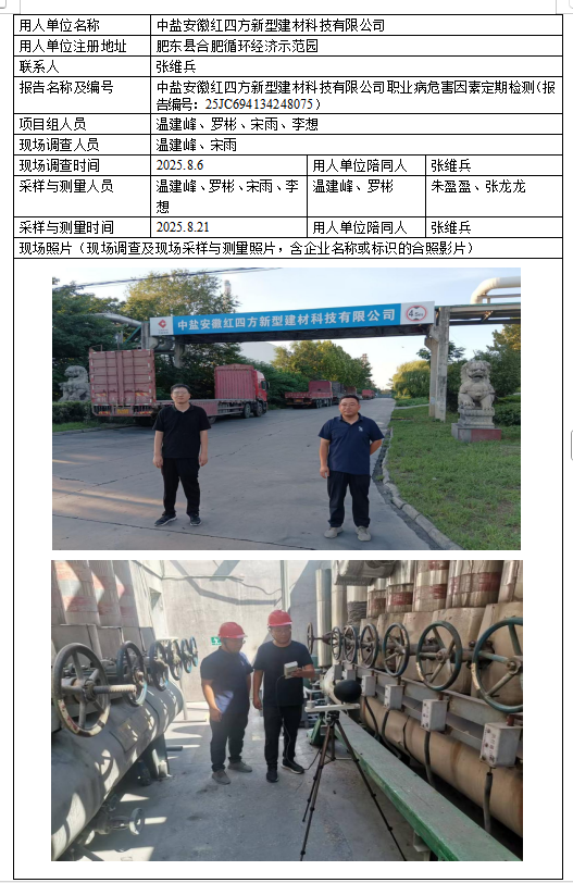 中盐安徽红四方新型建材科技有限公司职业病危害因素定期检测