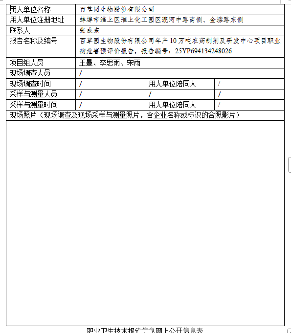 百草园生物股份有限公司年产10万吨农药制剂及研发中心项目职业病危害预评价报告