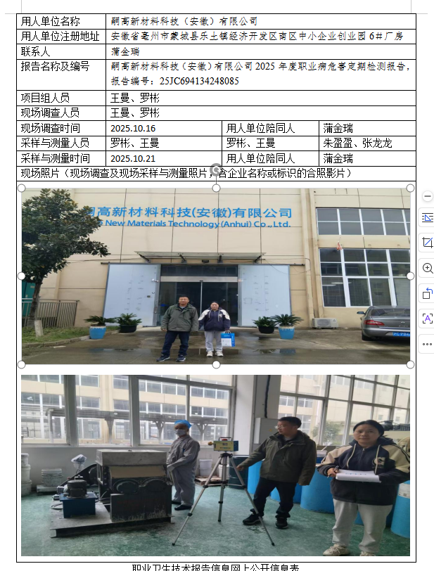 嗣高新材料科技(安徽)有限公司2025年度职业病危害定期检测报告