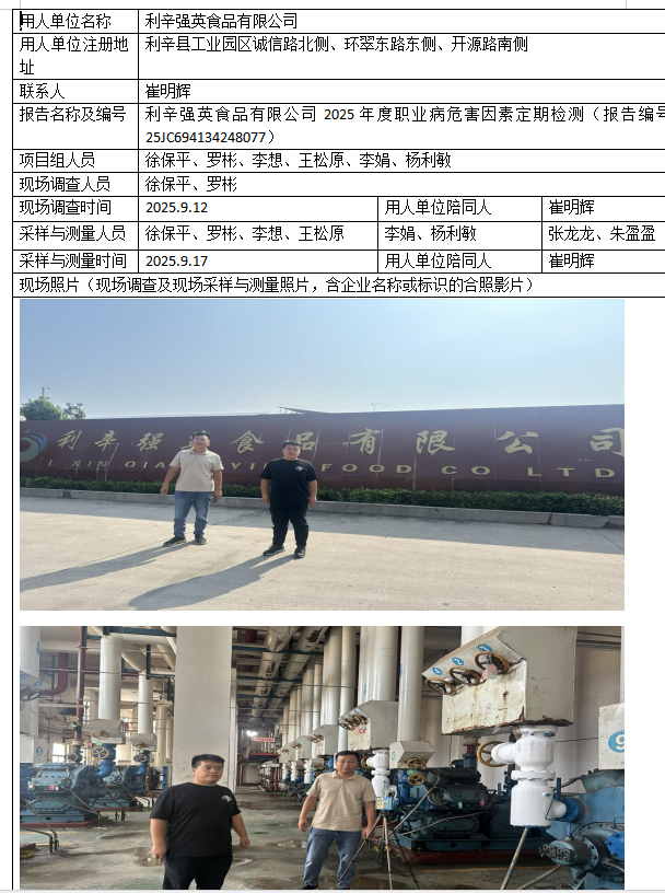 利辛强英食品有限公司2025年度职业病危害因素定期检测