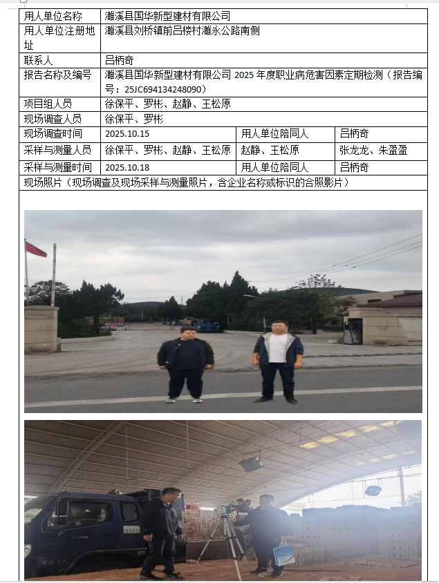 濉溪县国华新型建材有限公司2025年度职业病危害因素定期检测
