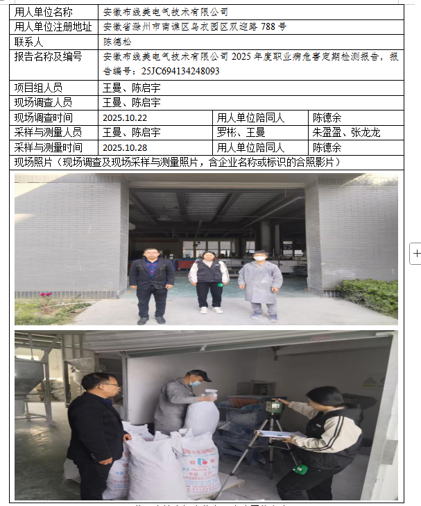 安徽布线美电气技术有限公司2025年度职业病危害定期检测报告