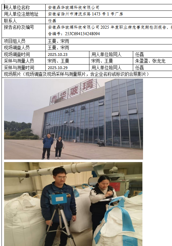 安徽鼎华玻璃科技有限公司2025年度职业病危害定期检测报告