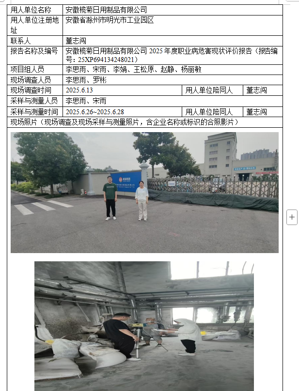 安徽榄菊日用制品有限公司2025年度职业病危害现状评价报告